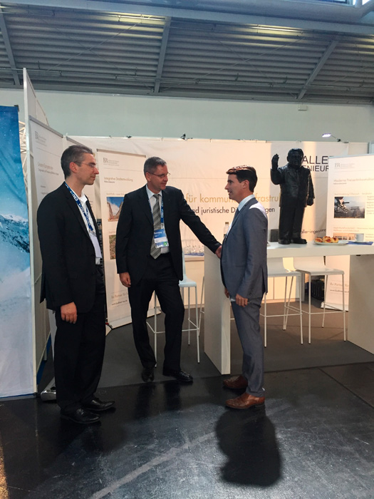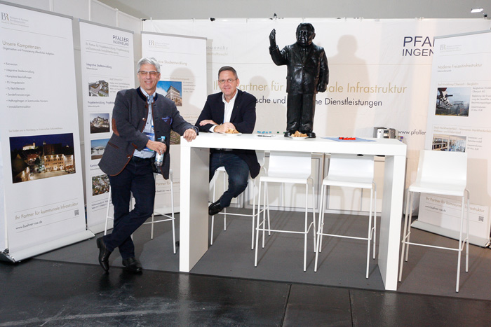 Auf einem Gemeinschaftsstand mit den Pfaller Ingenieuren wurden erfolgreiche kommunale Infrastrukturprojekte vorgestellt, welche von den Bühner Rechtsanwälten vergabe-, beihilfe- und immobilienrechtlich beraten worden sind.